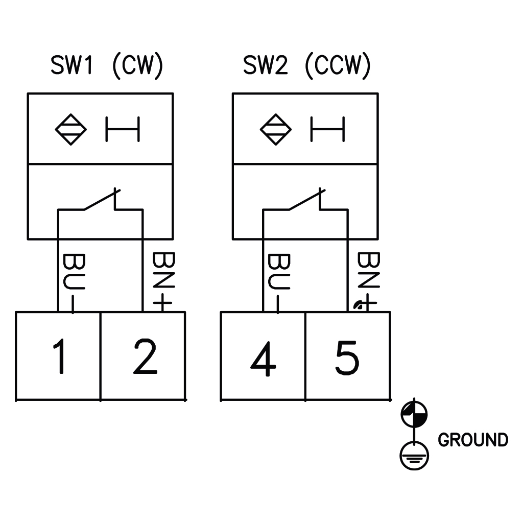 - สามารถติดตั้งสวิตช์จำกัดตำแหน่งได้ 2 ตัว ทั้งแบบกลไก “SPDT” หรือแบบระยะใกล้