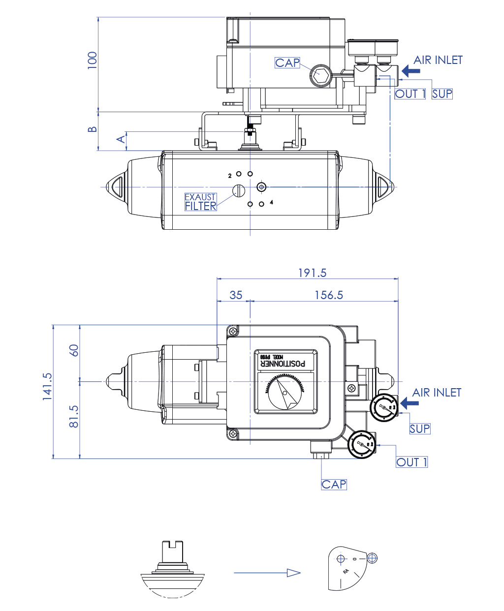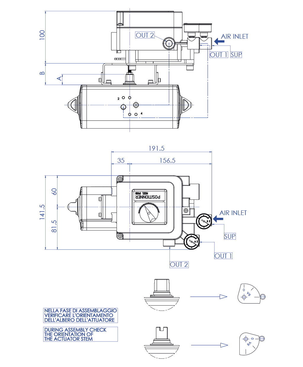 พื้นที่ปลอดภัย กล่องลิมิตสวิตช์ ลิมิตสวิตช์ภายนอกและตัวบ่งชี้ตำแหน่ง โพซิชันเนอร์ โซลินอยด์วาล์วและคอยล์ อุปกรณ์ควบคุมการไหล เกียร์บ็อกซ์พวงมาลัยมือ ตัวลดสี่เหลี่ยมและฟิลเตอร์ พื้นที่ ATEX กล่องลิมิตสวิตช์ ลิมิตสวิตช์ภายนอกและตัวบ่งชี้ตำแหน่ง โพซิชันเนอร์ โซลินอยด์วาล์วและคอยล์ Download General catalogue ดาวน์โหลด Actuator Accessories Catalogue การถอดรหัส MAGNUM & THOR กำหนดค่าผลิตภัณฑ์ของคุณ ดาวน์โหลดไฟล์ 2D และ 3D ในหลายรูปแบบ ดาวน์โหลด Sales conditions มาโคร อุปกรณ์เสริมสำหรับแอคชูเอเตอร์ หมวดหมู่ พื้นที่ ATEX หมวดย่อย โพซิชันเนอร์ ค้นหารหัส ขอข้อมูล ดาวน์โหลดแค็ตตาล็อก KPLEM4 ATEX ELECTROPNEUMATIC POSITIONER 4-20MA เมื่อซื้อตัวปรับตำแหน่งที่ติดตั้งมากับแอคชูเอเตอร์นิวเมติกของ OMAL S.p.A. จะได้รับอุปกรณ์ที่ปรับเทียบเรียบร้อยแล้ว หากไม่ได้ติดตั้งจากโรงงาน การตั้งค่าจะเป็นความรับผิดชอบของลูกค้าเอง โดย OMAL S.p.A. จะไม่รับผิดชอบในกรณีดังกล่าว คำอธิบายตัวปรับตำแหน่งอิเล็กโทรนิวเมติกแบบแคม เหมาะอย่างยิ่งสำหรับการทำงานแบบสัดส่วนของแอคชูเอเตอร์รุ่น DAN และ SRN โดยเชื่อมต่อกับแอคชูเอเตอร์ผ่านชุดติดตั้งที่ยึดอยู่กับตัวแอคชูเอเตอร์ สัญญาณไฟฟ้าควบคุมที่ได้รับจากอุปกรณ์ต่าง ๆ เช่น เทอร์โมสตัท วิสโคมิเตอร์ หรือเกจวัดความดัน จะถูกส่งเข้าสู่ตัวปรับตำแหน่ง ซึ่งจะทำหน้าที่ปรับมุมการเปิดและปิดของวาล์วตามสัญญาณนั้น การทำงานในทิศตามเข็มและทวนเข็มนาฬิกาสามารถสลับได้โดยไม่ต้องใช้อุปกรณ์เพิ่มเติม เพียงแค่กลับด้านของแคมและสลับการเชื่อมต่อของแอคชูเอเตอร์เท่านั้น คุณสมบัติทางเทคนิค- แหล่งจ่ายลม: ลมแห้งสำหรับเครื่องมือ 5 µ- สัญญาณไฟฟ้าอินพุต: 4 ÷ 20 mA- เกจวัดความดัน 2 ตัว: 1 ตัวสำหรับลมจ่าย, 1 ตัวสำหรับสัญญาณควบคุม- ค่าความต้านทานอินพุต: 235 ± 15 โอมห์ (4 ÷ 20 mA DC)- ข้อต่อลม: 1/4” NPT- ข้อต่อไฟฟ้า: M20 x 1.5- ค่าความเป็นเชิงเส้น: < ± 2%- ความไวในการทำงาน: < 0.5% ของช่วงการทำงาน- การใช้ลม: ตั้งแต่ 5 Nl/นาที (ที่ P = 1.4 บาร์) ถึง 11 Nl/นาที (ที่ P = 4 บาร์)- อุณหภูมิการทำงาน: ตั้งแต่ -20°C ถึง +80°C- ระดับการป้องกัน: IP65 (ตามมาตรฐาน IEC 60529)- การผลิตตามมาตรฐานนิรภัยภายใน ATEX II2G EE xib IICT5/T6 (ไม่มีสัญญาณป้อนกลับ) การรับรองมาตรฐาน- หนังสือรับรองความสอดคล้องตามมาตรฐาน ATEX II 2 G Ex ib IIC T5/T6 และอื่น ๆ ตามคำขอ SMC - IP 8100 หมายเหตุตัวปรับตำแหน่งแบบนิวเมติกและอิเล็กโทรนิวเมติกจะจัดส่งตามคำขอ โดยได้รับการปรับตั้งล่วงหน้าและติดตั้งโดยใช้ท่ออะลูมิเนียมหุ้มพร้อมข้อต่อแบบเร็วการปรับตั้ง A = 0° - 90°:• สัญญาณควบคุม 4 mA: ตำแหน่งปิด• สัญญาณควบคุม 20 mA: ตำแหน่งเปิดการปรับตั้ง D = 90° - 0°:• สัญญาณควบคุม 4 mA: ตำแหน่งเปิด• สัญญาณควบคุม 20 mA: ตำแหน่