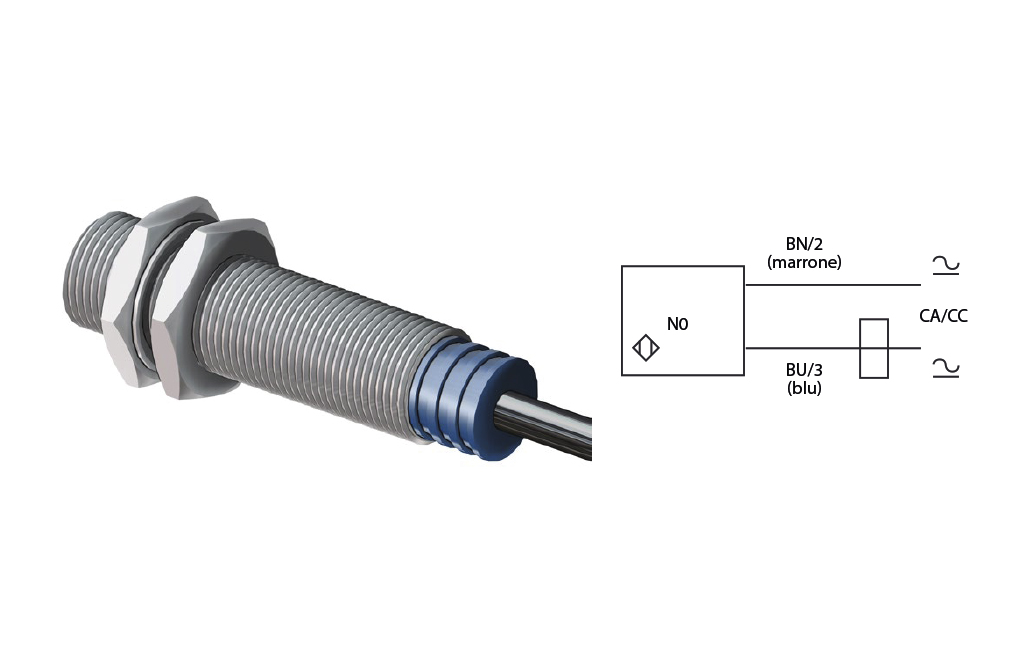 - สวิตช์จำกัดระยะใกล้แบบ M12 พร้อมการเชื่อมต่อสาย NO แรงดันไฟฟ้าจ่าย: 24÷240V AC; 24÷210V DC