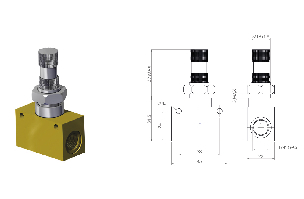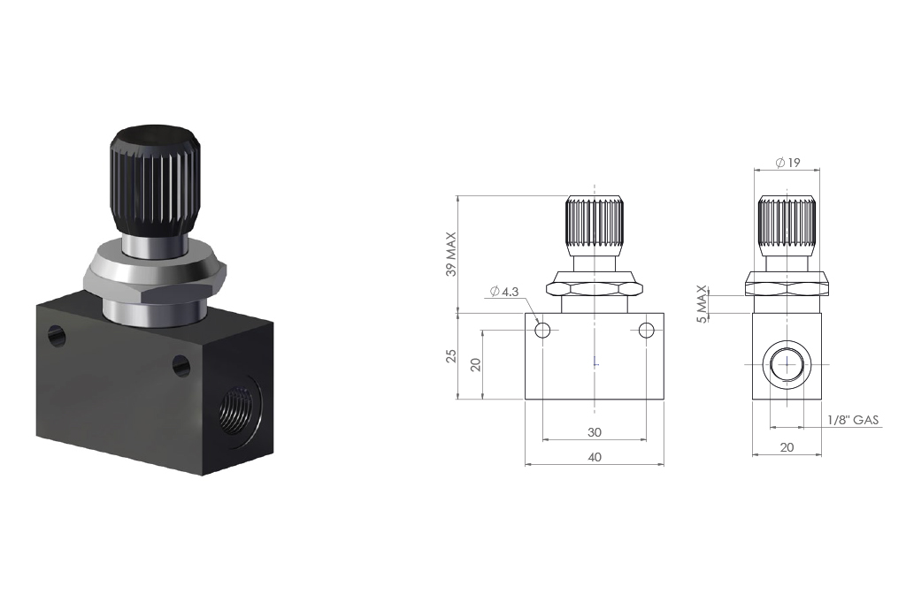 พื้นที่ปลอดภัย กล่องลิมิตสวิตช์ ลิมิตสวิตช์ภายนอกและตัวบ่งชี้ตำแหน่ง โพซิชันเนอร์ โซลินอยด์วาล์วและคอยล์ อุปกรณ์ควบคุมการไหล เกียร์บ็อกซ์พวงมาลัยมือ ตัวลดสี่เหลี่ยมและฟิลเตอร์ พื้นที่ ATEX กล่องลิมิตสวิตช์ ลิมิตสวิตช์ภายนอกและตัวบ่งชี้ตำแหน่ง โพซิชันเนอร์ โซลินอยด์วาล์วและคอยล์ Download General catalogue ดาวน์โหลด Actuator Accessories Catalogue การถอดรหัส MAGNUM & THOR กำหนดค่าผลิตภัณฑ์ของคุณ ดาวน์โหลดไฟล์ 2D และ 3D ในหลายรูปแบบ ดาวน์โหลด Sales conditions มาโคร อุปกรณ์เสริมสำหรับแอคชูเอเตอร์ หมวดหมู่ พื้นที่ปลอดภัย หมวดย่อย อุปกรณ์ควบคุมการไหล ค้นหารหัส ขอข้อมูล ดาวน์โหลดแค็ตตาล็อก FLOW CONTROLS ตัวควบคุมการไหลแบบ NAMUR ขนาด G 1/4” NAMUR คุณลักษณะทางเทคนิค- รุ่นที่ 1: สำหรับวาล์วโซลินอยด์แบบ 5/2 ทาง ใช้สำหรับควบคุมจังหวะการเคลื่อนที่ไปข้างหน้าและถอยหลังของแอคชูเอเตอร์แบบนิวเมติกชนิดดับเบิลแอคติ้ง- รุ่นที่ 2: สำหรับวาล์วโซลินอยด์แบบ 3/2 ทาง ใช้สำหรับควบคุมจังหวะการเคลื่อนที่ไปข้างหน้าและถอยหลังของแอคชูเอเตอร์แบบสปริงรีเทิร์น- มาตรฐาน: NAMUR 1/4- แรงดันใช้งาน: 1–10 บาร์ (14,5–145 PSI)- น้ำหนัก: รุ่นที่ 1 = 140 กรัม (0,308 ปอนด์) - รุ่นที่ 2 = 220 กรัม (0,485 ปอนด์)ใช้สกรูต่อไปนี้สำหรับการติดตั้งร่วมกับโซลินอยด์รุ่น ER8188 และ ER8581/ER8681:- รุ่นที่ 1 = M5 x 55- รุ่นที่ 2 = M5 x 65 ตัวควบคุมการไหลขนาด G1/8" คุณลักษณะทางเทคนิค- รุ่นทิศทางเดียว Pneumax 6.01.18/4- รุ่นสองทิศทาง Pneumax 6.01.18/5- ขนาดข้อต่อ 1/8”- แรงดันทำงานสูงสุด 10 บาร์- อุณหภูมิการทำงาน -5 ÷ +70°C- สื่อที่ใช้: อากาศกรองสะอาด- เส้นผ่านศูนย์กลางรู 3 มม.- น้ำหนัก 0,1 กก. ตัวควบคุมการไหลขนาด G 1/4” คุณลักษณะทางเทคนิค• รุ่นทิศทางเดียว Pneumax 6.01.14 N• รุ่นสองทิศทาง Pneumax 6.01.14/1 N• ขนาดข้อต่อ 1/4”• แรงดันทำงานสูงสุด 10 บาร์• อุณหภูมิการทำงาน -5 ÷ +70°C• สื่อที่ใช้: อากาศกรองสะอาด• เส้นผ่านศูนย์กลางรู 7 มม.• น้ำหนัก 0,105 กก. ค้นหารหัส