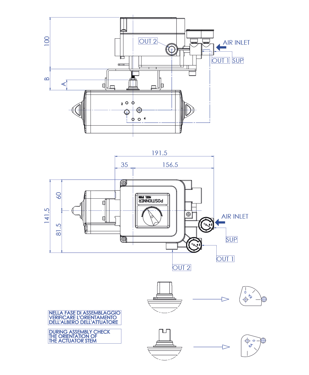 พื้นที่ปลอดภัย กล่องลิมิตสวิตช์ ลิมิตสวิตช์ภายนอกและตัวบ่งชี้ตำแหน่ง โพซิชันเนอร์ โซลินอยด์วาล์วและคอยล์ อุปกรณ์ควบคุมการไหล เกียร์บ็อกซ์พวงมาลัยมือ ตัวลดสี่เหลี่ยมและฟิลเตอร์ พื้นที่ ATEX กล่องลิมิตสวิตช์ ลิมิตสวิตช์ภายนอกและตัวบ่งชี้ตำแหน่ง โพซิชันเนอร์ โซลินอยด์วาล์วและคอยล์ Download General catalogue ดาวน์โหลด Actuator Accessories Catalogue การถอดรหัส MAGNUM & THOR กำหนดค่าผลิตภัณฑ์ของคุณ ดาวน์โหลดไฟล์ 2D และ 3D ในหลายรูปแบบ ดาวน์โหลด Sales conditions มาโคร อุปกรณ์เสริมสำหรับแอคชูเอเตอร์ หมวดหมู่ พื้นที่ปลอดภัย หมวดย่อย โพซิชันเนอร์ ค้นหารหัส ขอข้อมูล ดาวน์โหลดแค็ตตาล็อก KPLEM4 ELECTROPNEUMATIC POSITIONER 4-20MA เมื่อซื้อตำแหน่งควบคุมพร้อมติดตั้งบนแอคชูเอเตอร์นิวเมติกของ OMAL S.P.A. แล้ว ลูกค้าจะได้รับอุปกรณ์ที่ได้รับการปรับเทียบเรียบร้อยแล้ว หากซื้อแยก การตั้งค่าจะเป็นความรับผิดชอบของลูกค้าเอง และ OMAL S.P.A. จะไม่รับผิดชอบในส่วนนี้ คำอธิบายตำแหน่งควบคุมแบบอิเล็กโทรนิวเมติกชนิดแคม เหมาะอย่างยิ่งสำหรับการทำงานแบบสัดส่วนของแอคชูเอเตอร์รุ่น DAN และ SRN โดยตำแหน่งควบคุมจะเชื่อมต่อกับแอคชูเอเตอร์ผ่านชุดติดตั้งที่ยึดไว้กับตัวแอคชูเอเตอร์ สัญญาณไฟฟ้าควบคุมที่มาจากอุปกรณ์ต่าง ๆ เช่น เทอร์โมสตัท วิสโคมิเตอร์ หรือเกจ์วัดแรงดัน จะถูกส่งไปยังตำแหน่งควบคุม ซึ่งจะทำหน้าที่ปรับมุมการเปิดและปิดของวาล์วตามสัญญาณที่ได้รับ สามารถเปลี่ยนการทำงานหมุนตามเข็มนาฬิกาหรือทวนเข็มนาฬิกาได้โดยไม่ต้องใช้อุปกรณ์เสริม เพียงหมุนแคมกลับด้านและสลับการเชื่อมต่อของแอคชูเอเตอร์ คุณลักษณะทางเทคนิค- แหล่งจ่ายอากาศ: อากาศแห้งสำหรับเครื่องมือ 5 µ- สัญญาณไฟฟ้าขาเข้า: 4 ÷ 20 mA- มาพร้อมเกจวัดแรงดัน 2 ตัว: 1 สำหรับแรงดันลมจ่ายเข้า และ 1 สำหรับสัญญาณควบคุม- ค่าความต้านทานขาเข้า: 235 ± 15 โอห์ม (4 ÷ 20 mA DC)- ข้อต่อระบบนิวเมติก: 1/4” NPT- ข้อต่อระบบไฟฟ้า: M20 x 1.5- ความเป็นเชิงเส้น (Linearity): < ± 2%- ความไว (Sensitivity): < 0.5% ของช่วงการทำงาน- การใช้ลม: ตั้งแต่ 5 Nl/min (ที่ P = 1.4 bar) ถึง 11 Nl/min (ที่ P = 4 bar)- อุณหภูมิการทำงาน: -20 °C ถึง +80 °C- การป้องกัน: IP65 (ตามมาตรฐาน IEC Pub. 60529) การรับรองมาตรฐานมีให้ตามคำขอ SMC - IP 8100 หมายเหตุตำแหน่งควบคุมแบบนิวเมติกและอิเล็กโทรนิวเมติกสามารถจัดหาได้ตามคำขอ โดยจะมีการปรับตั้งค่าล่วงหน้าและติดตั้งด้วยท่ออะลูมิเนียมหุ้มและข้อต่อแบบเร็วการปรับตั้งค่า A = 0° - 90°:• สัญญาณควบคุม 4 mA: ตำแหน่งปิด• สัญญาณควบคุม 20 mA: ตำแหน่งเปิดการปรับตั้งค่า D = 90° - 0°:• สัญญาณควบคุม 4 mA: ตำแหน่งเปิด• สัญญาณควบคุม 20 mA: ตำแหน่งปิดสำหรับข้อมูลเพิ่มเติม โปรดดูคู่มือการใช้งานและบำรุงรักษา ตำแหน่งควบคุมสำหรับแอ