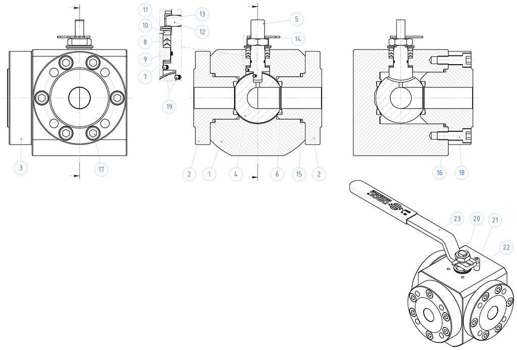 H2 INVICTUS (เอชทู อินวิคตัส) MAGNUM (แม็กนัม) MAGNUM Wafer (แม็กนัม เวเฟอร์) MAGNUM Split Wafer (แม็กนัม สปลิต เวเฟอร์) MAGNUM Split Wafer 3 ways 4 seals (แม็กนัม สปลิต เวเฟอร์ 3 เวย์ 4 ซีล) THOR PROCHEMIE 60 (โปรเคมมี 60) HERCULES (เฮอร์คิวลีส) KRATOS (เครโทส) SUPREME TRUNNION (ซูพรีม ทรันเนียน) OTHER BRASS BALL VALVES (วาล์วลูกบอลทองเหลืองอื่น ๆ) OTHER CAST IRON BALL VALVES (วาล์วลูกบอลเหล็กหล่ออื่น ๆ) OTHER STAINLESS STEEL BALL VALVES (วาล์วลูกบอลสแตนเลสอื่น ๆ) OTHER CARBON STEEL BALL VALVES (วาล์วลูกบอลเหล็กกล้าคาร์บอนอื่น ๆ) OTHER PVC BALL VALVES (วาล์วลูกบอลพีวีซีอื่น ๆ) Download General catalogue ดาวน์โหลด Actuator Accessories Catalogue การถอดรหัส MAGNUM & THOR กำหนดค่าผลิตภัณฑ์ของคุณ ดาวน์โหลดไฟล์ 2D และ 3D ในหลายรูปแบบ ดาวน์โหลด Sales conditions มาโคร วาล์วบอล หมวดหมู่ MAGNUM (แม็กนัม) หมวดย่อย MAGNUM Split Wafer 3 ways 4 seals (แม็กนัม สปลิต เวเฟอร์ 3 เวย์ 4 ซีล) ครอบครัว MAGNUM Split Wafer 3 ways 4 seals PN 16-40 ANSI 150 (แม็กนัม สปลิต เวเฟอร์ 3 เวย์ 4 ซีล พีเอ็น 16-40 แอนซี 150) กำหนดค่า ระบบขับเคลื่อน ขอข้อมูล พิมพ์หน้าเว็บ ดาวน์โหลดแค็ตตาล็อก MAGNUM SPLIT WAFER 3 WAYS 4 SEALS (แม็กนัม สปลิต เวเฟอร์ 3 เวย์ 4 ซีล) ถอดรหัส ประโยชน์ คุณลักษณะ มิติ วัสดุ แผนภาพและแรงบิดเริ่มต้น ข้อกำหนดทางเทคนิค อุปกรณ์เสริม เอกสาร 1. อุปกรณ์ป้องกันไฟฟ้าสถิต (การนำไฟฟ้าต่อเนื่องระหว่างลูกบอล, ก้าน และตัววาล์ว)หลีกเลี่ยงการเกิดประจุไฟฟ้าสถิตซึ่งอาจทำให้เกิดประกายไฟและเพลิงไหม้ในสภาพแวดล้อมที่ติดไฟหรือระเบิดได้รับประกันความปลอดภัยของการสัมผัสตลอดอายุการใช้งานของวาล์ว2. แหวนป้องกันการเสียดสีคู่ช่วยลดแรงบิดเริ่มเคลื่อนที่ (Breakaway Torque)ลดการสึกหรอเมื่อเทียบกับการใช้แหวนเดี่ยว3. ชุดซีลแบบ "V"; 3 ซีล + โอริงรับประกันการซีลที่สมบูรณ์แม้หลังจากจำนวนรอบการใช้งานมาก4. สปริงดิสก์บนซีลก้านวาล์วชดเชยระยะเล่นที่เกิดจากการสึกหรอเนื่องจากการหมุนของก้าน เพื่อป้องกันการรั่วไหลออกภายนอกช่วยรักษาแรงกดของซีลแบบเชฟรอน (V) ป้องกันการรั่วไหลแม้มีการเปลี่ยนแปลงอุณหภูมิอย่างมาก5. ซีลกราไฟต์แบบยืดหยุ่นรับประกันการซีลภายนอกโดยไม่ขึ้นกับการเปลี่ยนแปลงอุณหภูมิที่วาล์วต้องเผชิญความแม่นยำสูงขึ้นในการจัดแนวเพลา เนื่องจากการวางตำแหน่งครั้งเดียวตั้งแต่การกลึงชิ้นงานดิบจนสำเร็จอายุการใช้งานของวาล์วนานขึ้นแรงบิดเริ่มเคลื่อนที่ลดลงตัววาล์วทำจากเหล็กคาร์บอน ที่ผ่านการรับรองมาตรฐาน NACEความต้านทานการกัดกร่อนสูงขึ้นความเหนียวและความยืดหยุ่นของวัสดุสูงขึ้นกระบวนการผลิตทั้งหมดดำเนินการภายในบริษัทควบคุมและตรวจสอบอย่างเข้มงวดในทุกขั้นตอนการผลิตสามารถจัดหาผลิตภัณฑ์พิเศษตามความต้องการของลูกค้าได้อย่างรวดเร็วใบรับรอง ATEXสามารถติดตั้งในสภาพแวดล้อมที่มีความเสี่ยงการระเบิดใบร