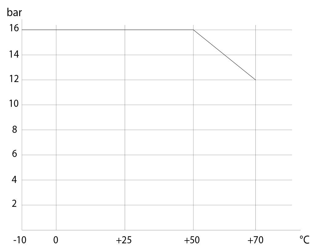 • ความดันการทำงาน: สูงสุด 16 บาร์ (10 บาร์สำหรับการใช้งานที่ปลายไลน์) ดูแผนภาพ