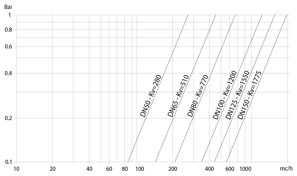 Kv คือค่าสัมประสิทธิ์ แสดงเป็น m³/h (โดยใช้น้ำที่อุณหภูมิ 15°C) ซึ่งทำให้เกิดการสูญเสียความดัน 1 บาร์