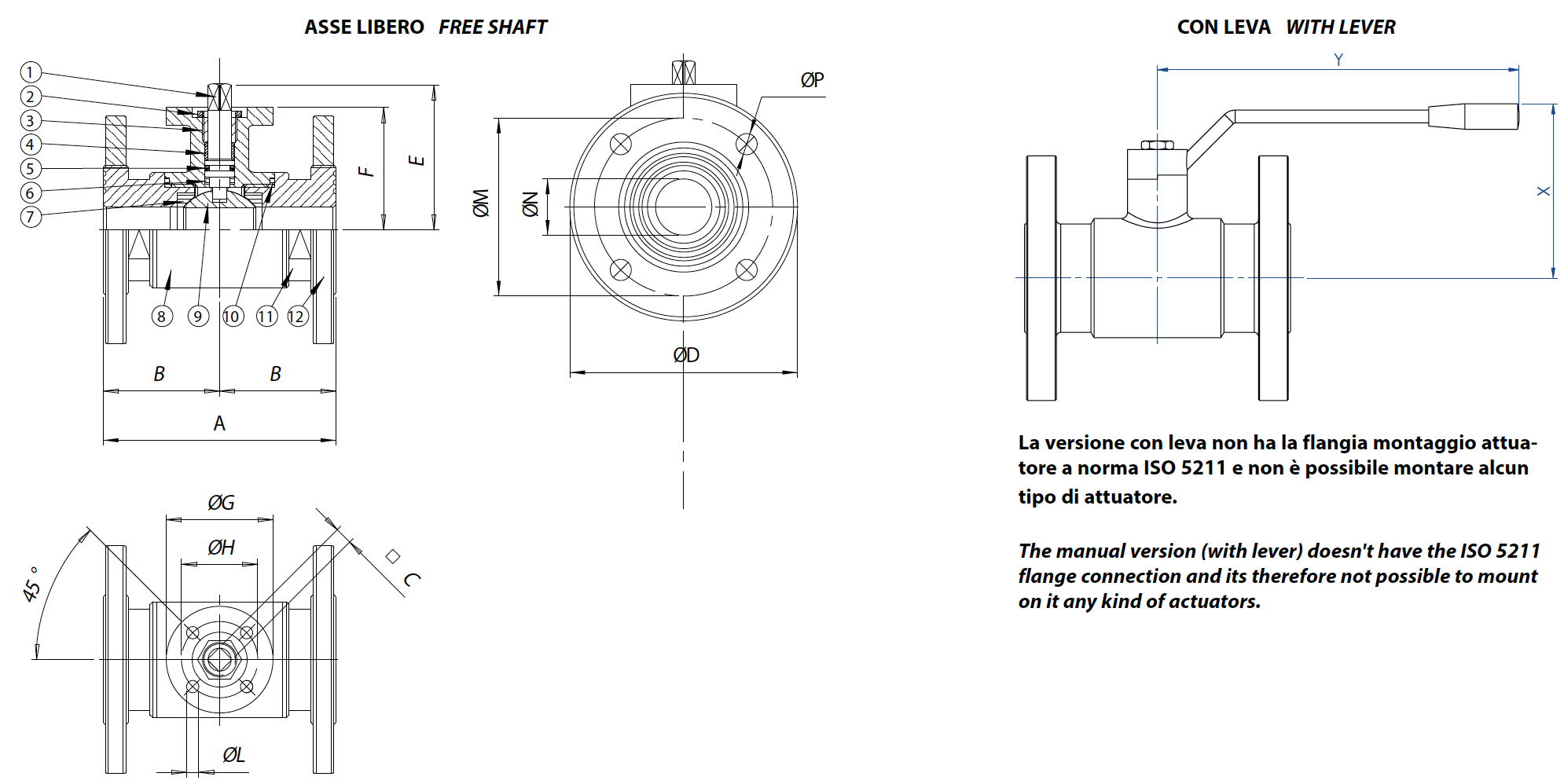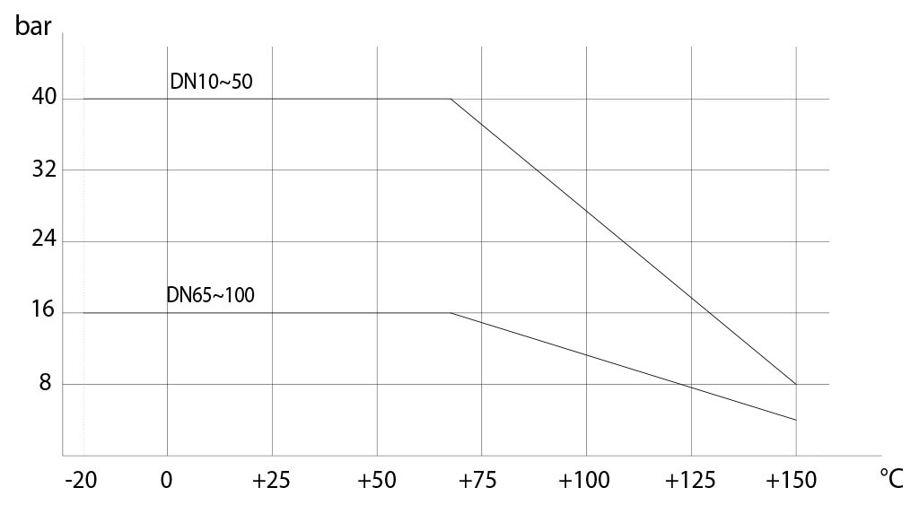 H2 INVICTUS (เอชทู อินวิคตัส) MAGNUM (แม็กนัม) THOR PROCHEMIE 60 (โปรเคมมี 60) HERCULES (เฮอร์คิวลีส) KRATOS (เครโทส) SUPREME TRUNNION (ซูพรีม ทรันเนียน) OTHER BRASS BALL VALVES (วาล์วลูกบอลทองเหลืองอื่น ๆ) OTHER CAST IRON BALL VALVES (วาล์วลูกบอลเหล็กหล่ออื่น ๆ) OTHER STAINLESS STEEL BALL VALVES (วาล์วลูกบอลสแตนเลสอื่น ๆ) OTHER CARBON STEEL BALL VALVES (วาล์วลูกบอลเหล็กกล้าคาร์บอนอื่น ๆ) OTHER PVC BALL VALVES (วาล์วลูกบอลพีวีซีอื่น ๆ) Download General catalogue ดาวน์โหลด Actuator Accessories Catalogue การถอดรหัส MAGNUM & THOR กำหนดค่าผลิตภัณฑ์ของคุณ ดาวน์โหลดไฟล์ 2D และ 3D ในหลายรูปแบบ ดาวน์โหลด Sales conditions มาโคร วาล์วบอล หมวดหมู่ Other stainless steel ball valves (วาล์วลูกบอลสแตนเลสอื่น ๆ) วาล์วบอลสเตนเลส ชนิด 2 ทาง แบบฟูลบอร์ พร้อมหน้าแปลน กำหนดค่า ระบบขับเคลื่อน ขอข้อมูล พิมพ์หน้าเว็บ ดาวน์โหลดแค็ตตาล็อก 1-6-3-2: ITEM 406 คุณลักษณะ ขนาด วัสดุ แผนภาพและแรงบิดเริ่มต้น คุณสมบัติทั่วไป:• ตัววาล์วผลิตจากสเตนเลส 316L• หน้าแปลนตามมาตรฐาน EN 1092-1; ขนาดตาม DIN 3202-F4; หน้าแปลนเกลียวหมุนตาม UNI PN 16• อุณหภูมิใช้งาน: ตั้งแต่ -20°C ถึง +150°C• ความดันใช้งาน: ดูตาราง• ช่วงของของไหล: อุตสาหกรรมอาหาร• การเชื่อมต่อหน้าแปลน ISO 5211• รุ่นแบบมือหมุน (พร้อมคันโยก) จะไม่มีการเชื่อมต่อหน้าแปลน ISO 5211 ดังนั้นจึงไม่สามารถติดตั้งตัวกระตุ้นใด ๆ ได้ตามคำขอ:• หน้าแปลนชุบสังกะสี• หน้าแปลน ASME B16.5 คลาส 150, 300• ซีลผลิตจาก: PTFE ผสมแก้ว, PTFE ผสมคาร์บอนกราไฟต์, โพลีเอทิลีนโมเลกุลสูง• สำหรับการใช้งานอื่น ๆ กรุณาติดต่อแผนกขายของเราการรับรอง:• รุ่น ATEX ตามข้อกำหนดของสหภาพยุโรป Directive 2014/34/EU• ใบรับรอง ATEX สามารถขอได้ ขนาด ขนาดAB□CøDEFøGøHøLøMøNn°xøPXYDN [mm][inch]DN 103/8"1105569047394636660104x1470125DN 151/2"11557,569549,541,54636665154x1475125DN 203/4"12060610553454636675204x1480125DN 251"12562,5911564,551,56550785254x14100170DN 321" 1/413065914069,556,565507100324x18110170DN 401" 1/21407014150897665507110404x18120240DN 502"1507514165978465507125504x18130240DN 652" 1/21708517185109,594,590709145654x18145260DN 803"180901720012110690709160808x18160300DN 1004"1909517220138120125102111801008x18180330 วัสดุ1เพลา316L สเตนเลส1.4404UNI X5CrNiMo 17 122น็อตล็อค303 สเตนเลส3แหวนเกลียวน็อตอัด304L สเตนเลส (303 สเตนเลส)4*แหวนรัดบนPTFE5*โอริงเพลาFKM6*แหวนรองPTFE7*ซีลPTFE8ตัววาล์ว316L สเตนเลส1.4404UNI X5CrNiMo 17 129ลูกบอล316L สเตนเลส1.4404UNI X5CrNiMo 17 1210*เกลียวซีลPTFE11ปลาย316L สเตนเลส1.4404UNI X5CrNiMo 17 1212หน้าแปลน316L สเตนเลส1.4404UNI X5CrNiMo 17 12* ชิ้นส่วนของชุดอะไหล่ KGBV75... แผนภาพความดัน/อุณหภูมิ แผนภาพการไหล/การสูญเสียความดัน และค่าสัมประสิทธิ์ Kv ที่กำหนด Kv คือค่าสัมประสิทธิ์ที่แสดงเป็น m³/h (โดยใช้น้ำที่ 15°C) ซึ่งทำให้เกิดการสูญเสียความดัน 1 บาร์ แรงบิดเริ่มต้น Nm ขนาดDN 10 3/8"DN 15 1/2"DN 20 3/4"DN 25 1"DN 32 1"1/4DN 40 1"1/2DN 50 2"DN 65 2"1/2DN 80 3"DN 100 4"PN 16 bar70112166PN 40 bar681116223042แรงบิดอาจเปลี่ยนแปลงได้ขึ้นอยู่กับอุณหภูมิและประเภทของของไหล; ต้องใช้ปัจจัยความปลอดภัย 1.4 แรงบิดอาจลดลงเมื่อมีความถี่ในการทำงานสูง การเลือกขนาดของตัวกระตุ้น/วาล์ว ที่แสดงในหน้าถัดไป อ้างอิงจากการใช้งานวาล์วกับของไหลเหลวหรือก๊าซ ท
