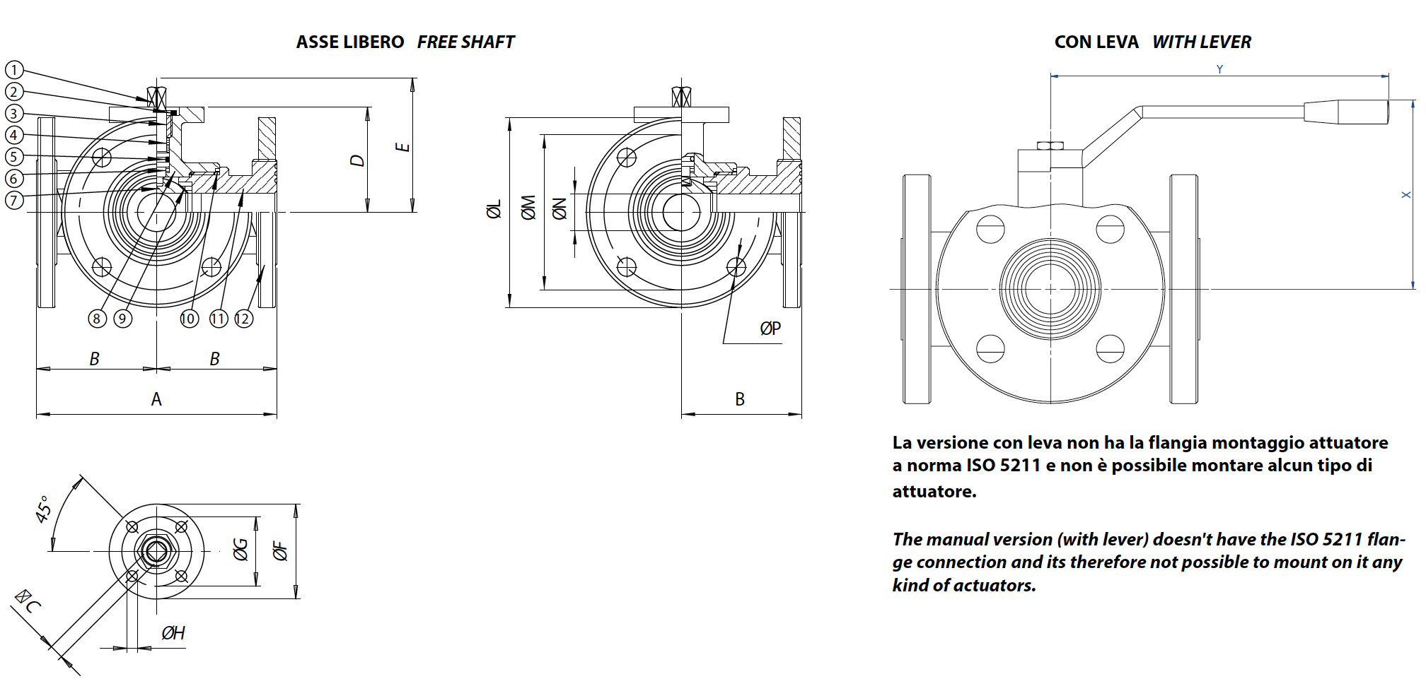 H2 INVICTUS (เอชทู อินวิคตัส) MAGNUM (แม็กนัม) THOR PROCHEMIE 60 (โปรเคมมี 60) HERCULES (เฮอร์คิวลีส) KRATOS (เครโทส) SUPREME TRUNNION (ซูพรีม ทรันเนียน) OTHER BRASS BALL VALVES (วาล์วลูกบอลทองเหลืองอื่น ๆ) OTHER CAST IRON BALL VALVES (วาล์วลูกบอลเหล็กหล่ออื่น ๆ) OTHER STAINLESS STEEL BALL VALVES (วาล์วลูกบอลสแตนเลสอื่น ๆ) OTHER CARBON STEEL BALL VALVES (วาล์วลูกบอลเหล็กกล้าคาร์บอนอื่น ๆ) OTHER PVC BALL VALVES (วาล์วลูกบอลพีวีซีอื่น ๆ) Download General catalogue ดาวน์โหลด Actuator Accessories Catalogue การถอดรหัส MAGNUM & THOR กำหนดค่าผลิตภัณฑ์ของคุณ ดาวน์โหลดไฟล์ 2D และ 3D ในหลายรูปแบบ ดาวน์โหลด Sales conditions มาโคร วาล์วบอล หมวดหมู่ Other stainless steel ball valves (วาล์วลูกบอลสแตนเลสอื่น ๆ) วาล์วบอลสเตนเลสแบบหน้าแปลน 3 ทาง ชนิดรูเต็ม พร้อมซีล 4 จุด พอร์ตแบบ “T” หรือ “L”ITEM 460วาล์วพอร์ตแบบ “T”ITEM 461วาล์วพอร์ตแบบ “L” กำหนดค่า ระบบขับเคลื่อน ขอข้อมูล พิมพ์หน้าเว็บ ดาวน์โหลดแค็ตตาล็อก OTHER STAINLESS STEEL BALL VALVES (วาล์วลูกบอลสแตนเลสอื่น ๆ) คุณลักษณะ ขนาด วัสดุ แผนภาพและแรงบิดเริ่มต้น ข้อมูลจำเพาะ คุณลักษณะทั่วไป:• วาล์วผลิตจากสเตนเลสสตีล 316L• หน้าแปลนตามมาตรฐาน EN 1092-1• วาล์วมีเบาะลูกบอล 4 จุด สามารถรับของไหลได้จากทั้ง 3 ทาง (ดูแผนผังประกอบ)• อุณหภูมิการทำงาน: ตั้งแต่ -20°C ถึง +150°C• ความดันการทำงาน: ดูตารางประกอบ• ช่วงการใช้งานของของไหล: อากาศ น้ำ อุตสาหกรรมอาหาร• การเคลือบผิว: ขัดมัน• หน้าแปลนเชื่อมต่อ ISO 5211• รุ่นแบบมือหมุน (พร้อมคันโยก) ไม่มีหน้าแปลนเชื่อมต่อ ISO 5211 ดังนั้นจึงไม่สามารถติดตั้งตัวกระตุ้นใด ๆ ได้ตามคำสั่งพิเศษ:• หน้าแปลน: ชุบสังกะสี - ASME B16.5 ชั้น 150, 300• ซีลสามารถทำจากวัสดุดังต่อไปนี้:PTFE ผสมใยแก้วPTFE ผสมกราไฟต์คาร์บอนโพลีเอทิลีนโมเลกุลสูง• สำหรับการใช้งานอื่น ๆ กรุณาติดต่อฝ่ายเทคนิคของเราการรับรอง:• รุ่น ATEX เป็นไปตามข้อกำหนดของสหภาพยุโรป Directive 2014/34/EU• ใบรับรอง ATEX มีให้ตามคำขอ มิติมิติAB□CDEøFøGøHøLøMøNn°xøPXYDN [mm][inch]DN 103/8"12060646,554,5463669060104x1485130DN 151/2"1306564957544269565154x1490130DN 203/4"14070956,569,56550710575204x14100170DN 251"15075961746550711585254x14110170DN 321" 1/4180901481,594,565507140100324x18130240DN 401" 1/2200100148910290709150110404x18140240DN 502"2201101791,5106,590709165125504x18150260DN 652" 1/224012017101,5116,512510211185145654x18160300DN 803"2601301711613412510211200160808x18175330DN 1004"30015017131149125102112201801008x18190330 วัสดุ1เพลา316L S.S.1.4401UNI X2CrNiMo 17 122น็อต303 S.S.3แหวนอัดก้าน304L S.S. (303 S.S.)4*แหวนรัดบนP.T.F.E.5*โอริงเพลาFKM6*แหวนรองP.T.F.E.7ลูกบอล316L S.S.1.4401UNI X2CrNiMo 17 128ตัววาล์ว316L S.S.1.4401UNI X2CrNiMo 17 129*ซีลP.T.F.E.10*ซีลปลายP.T.F.E.11ปลาย316L S.S.1.4401UNI X2CrNiMo 17 1212หน้าแปลน316L S.S.1.4401UNI X2CrNiMo 17 12* ชิ้นส่วนในชุดอะไหล่ KGBV46... แผนภาพความดัน/อุณหภูมิ แรงบิดเริ่มต้น (Nm) ขนาดDN 10 3/8"DN 15 1/2"DN 20 3/4"DN 251"DN 32 1"1/4DN 40 1"1/2DN 502"DN 65 2"1/2DN 803"DN 1004"PN 16 บาร์142212304PN 40 บาร์9182327365483แรงบิดอาจแตกต่างกันไปตามอุณหภูมิและชนิดของของไหล ต้องใช้ค่าความปลอดภัย 1.4 แรงบิดอาจลดลงเมื่อมีการทำงานบ่อยครั้ง การเลือกขนาดของตัวกระตุ้น/วาล์วที่แสดงในหน้าถัดไปอ้างอิงจากการใช้งานกับของเหลวหรือก๊าซที่สะอาด