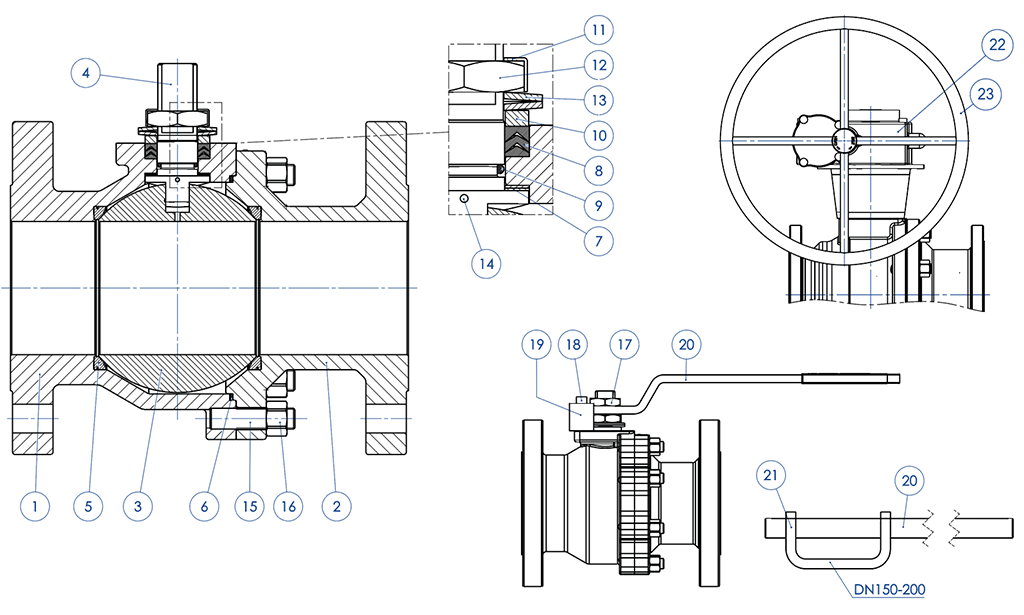 1. Antistatic device (electrical continuity between ball, stem and body) Static electricity is avoided which can cause sparks and fire in an inflammable/explosive environment Contact safety throughout the entire life of the valve