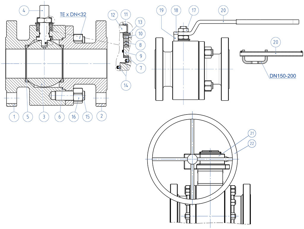 | 3 | ลูกบอล | ASTM A351 CF8M (1.4408/GX5CrNiMo19-12-2) |