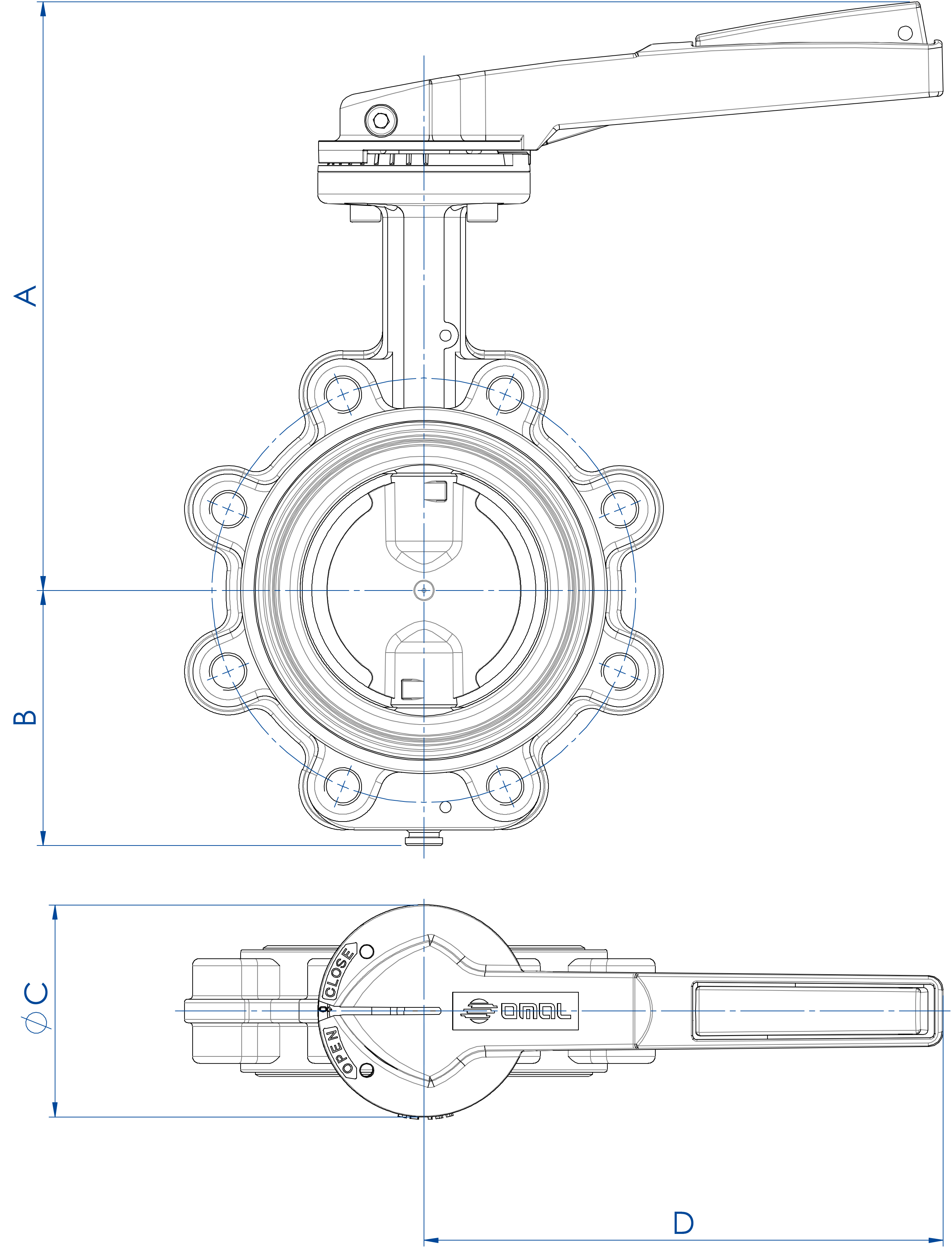 วาล์วผีเสื้อ OMAL มีทั้งแบบแผ่นคั่น (Wafer) และแบบมีหูยึด (Lug) ตั้งแต่ขนาด DN 40 ถึง DN 600 (แบบ Lug ถึง DN 300) ได้รับการออกแบบและผลิตเพื่อให้สามารถใช้งานได้ในทุกสาขาอุตสาหกรรมส่วนใหญ่ทั้งหมด