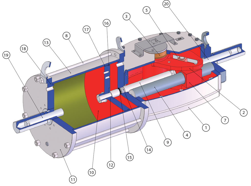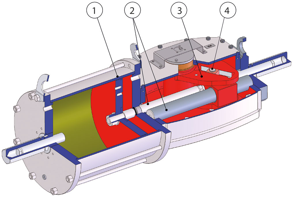 3 ระบบแปลงการเคลื่อนที่จากเชิงเส้นเป็นแบบหมุน แยกออกจากของไหลควบคุมของแอคชูเอเตอร์
