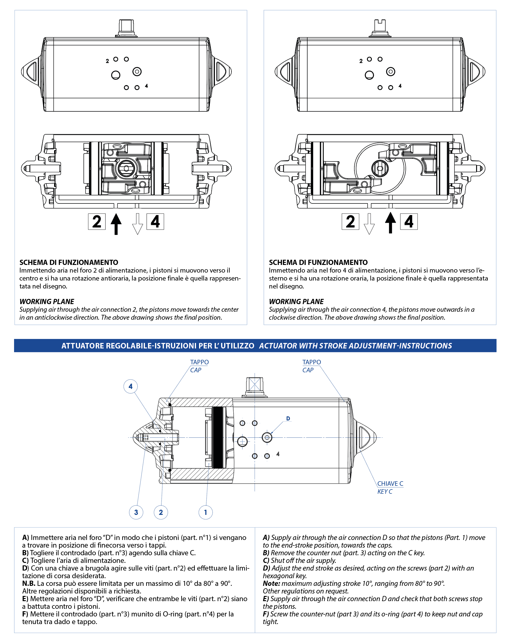 RACKON – แอคชูเอเตอร์นิวแมติกแบบแร็คแอนด์พีเนียน AGO – แอคชูเอเตอร์อะลูมิเนียม AGO HANDWHEEL – แอคชูเอเตอร์พร้อมพวงมาลัยมือในตัว AGO CF8M – แอคชูเอเตอร์สแตนเลสหล่อแม่นยำ CF8M AGO 316 – แอคชูเอเตอร์สแตนเลส 316 จากแท่งตัน AGO A105 – แอคชูเอเตอร์เหล็กกล้าคาร์บอน A105 AGO TWO STAGE – แอคชูเอเตอร์นิวแมติกอะลูมิเนียมแบบทูสเตจ AGO – รุ่นพิเศษตามคำขอ แอคชูเอเตอร์เหล็กกล้าคาร์บอนเฮฟวี่ดิวตี้ Download General catalogue ดาวน์โหลด Actuator Accessories Catalogue การถอดรหัส MAGNUM & THOR กำหนดค่าผลิตภัณฑ์ของคุณ ดาวน์โหลดไฟล์ 2D และ 3D ในหลายรูปแบบ ดาวน์โหลด Sales conditions มาโคร แอคชูเอเตอร์นิวแมติก หมวดหมู่ AGO 316 – แอคชูเอเตอร์สแตนเลส 316 จากแท่งตัน การเลือกขนาด ขอข้อมูล พิมพ์หน้าเว็บ ดาวน์โหลดแค็ตตาล็อก AGO 316 – แอคชูเอเตอร์สแตนเลส 316 จากแท่งตัน ประโยชน์ คุณลักษณะ ขนาด วัสดุ ข้อมูลจำเพาะ อุปกรณ์เสริม เอกสาร 1. แถบหล่อลื่นตัวเองแบบมีพลังงานลดแรงเสียดทานระหว่างลูกสูบและกระบอกป้องกันการยึดติดของซีลกับกระบอกแม้ในกรณีที่ไม่ได้ใช้งานเป็นเวลานาน2. ร่อง บุช และพิน ผลิตจากเหล็กที่มีค่าความแข็งมากกว่า 50 HRCเพิ่มความทนทานต่อแรงภายในตัวกระตุ้น (แอคชูเอเตอร์)3. แรงเสียดทานแบบหมุนระหว่างลูกสูบและร่องลดแรงเสียดทาน4. ระบบสก็อตยอร์กแบบแรงเสียดทานหมุน (แปลงการเคลื่อนไหวแบบหมุนให้เป็นแบบเชิงเส้นด้วยลูกสูบและเพลาโดยไม่ใช้เฟือง)ลดแรงเสียดทานระหว่างลูกสูบและเพลา จึงทำให้การสึกหรอของชิ้นส่วนลดลงแรงบิดเริ่มต้น (BTO และ BTC) สูงขึ้นขนาดเล็กกว่าตัวกระตุ้นแบบแร็คและเฟือง (ในแรงบิดเท่ากัน) จึงใช้พื้นที่ติดตั้งน้อยกว่าน้ำหนักเบากว่าตัวกระตุ้นแบบแร็คและเฟืองประมาณ 30% (กก./นิวตันเมตร) ทำให้ประหยัดในการออกแบบโครงสร้างของระบบ/อุปกรณ์ใช้ลมน้อยกว่าตัวกระตุ้นแบบแร็คและเฟือง (-40% ลูกบาศก์เซนติเมตร/นิวตันเมตร สำหรับชนิดทำงานสองทาง และ -20% สำหรับชนิดสปริงรีเทิร์น) ทำให้ภาระงานของคอมเพรสเซอร์ลดลง หรือสามารถใช้คอมเพรสเซอร์ขนาดเล็กลงได้5. กระบอกม้วนขึ้นรูปลดการสึกหรอของแถบหล่อลื่นตัวเองเนื่องจากผิวมีความเรียบเนียนสูง6. เพลาสแตนเลสทนการกัดกร่อนได้ดียิ่งขึ้นตั้งแต่ขนาดใหญ่กว่า DAN15 ขึ้นไป จะมีอินเทอร์เฟซ NAMUR สำหรับวาล์วโซลินอยด์ในตัวไม่จำเป็นต้องติดตั้งแผ่นเสริมเพิ่มเติมกระบวนการผลิตครบวงจรภายในโรงงานควบคุมและตรวจสอบความแม่นยำได้สูงสุดในทุกขั้นตอนของการผลิตใบรับรอง ATEXสามารถติดตั้งได้ในพื้นที่ที่มีความเสี่ยงต่อการเกิดการระเบิดได้รับการรับรองสูงสุดถึงระดับ SIL 3รับประกันความปลอดภัยการทำงานในระดับสูง คุณลักษณะทางเทคนิคแรงบิดตั้งแต่ 720 Nm ถึง 1920 Nmหน