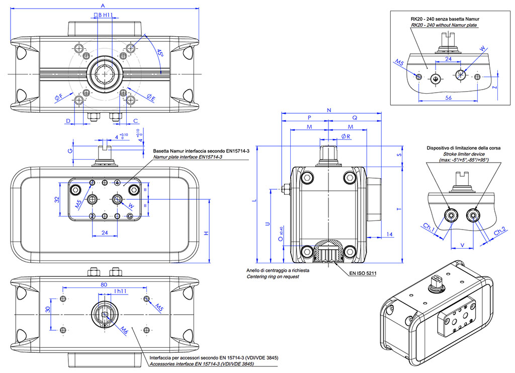 • หน้าแปลนติดตั้งตามมาตรฐาน EN ISO 5211: F03 - F04 - F05 - F07 - F10 - F12