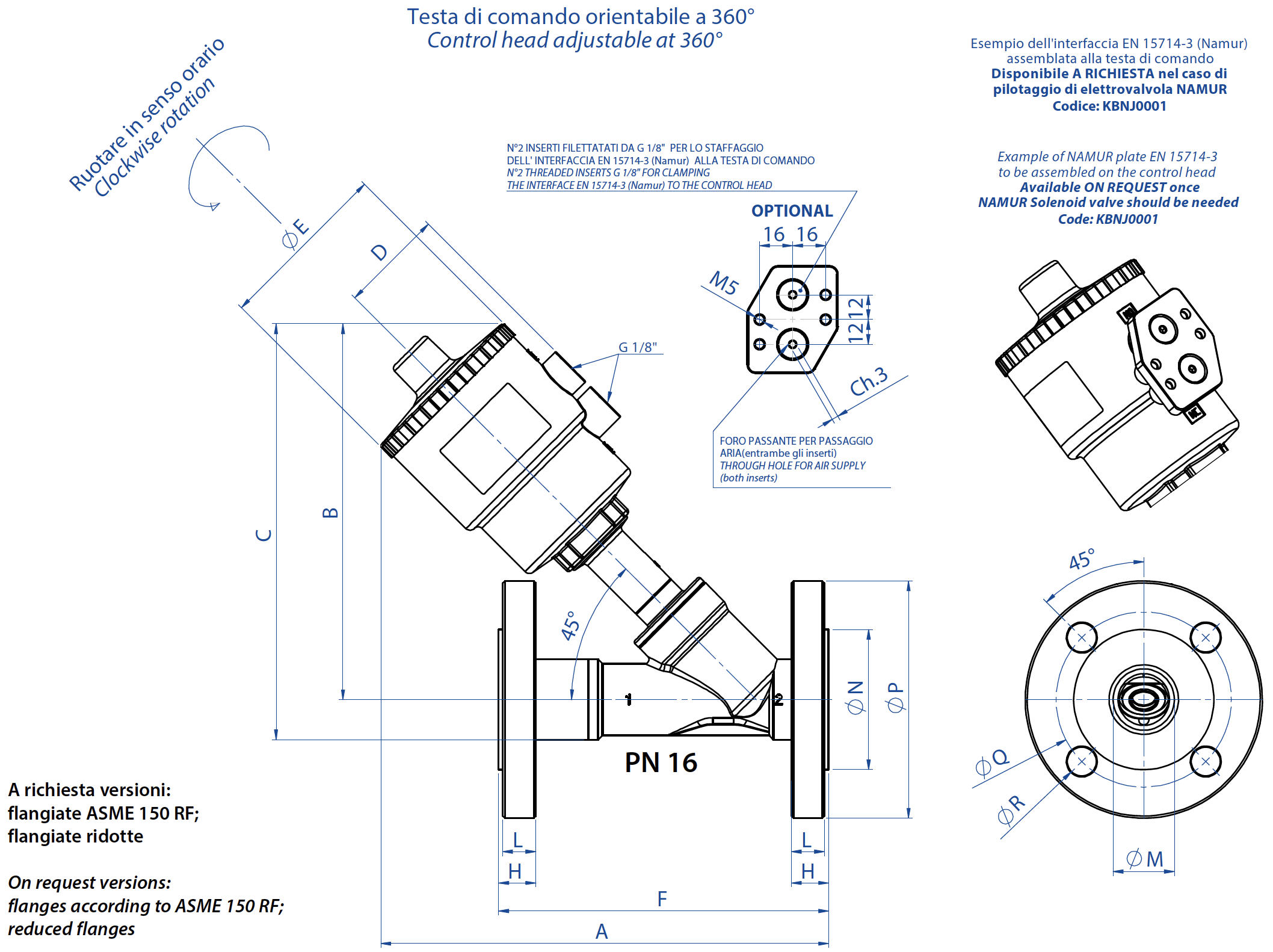 VIP - วาล์วนิวเมติกแบบแกนร่วม VIP (NEW MODEL) - วาล์วโคแอกเซียลนิวเมติก VIP EVO วาล์วแองเกิลซีท ZEUS ARES-ATENA (อาเรส‑อาเตนา) ARES พร้อมปลายพิเศษ ARES แบบขับเคลื่อนด้วยมือ Download General catalogue ดาวน์โหลด Actuator Accessories Catalogue การถอดรหัส MAGNUM & THOR กำหนดค่าผลิตภัณฑ์ของคุณ ดาวน์โหลดไฟล์ 2D และ 3D ในหลายรูปแบบ ดาวน์โหลด Sales conditions มาโคร วาล์วนิวเมติก หมวดหมู่ วาล์วแองเกิลซีท หมวดย่อย ARES พร้อมปลายพิเศษ กำหนดค่า ระบบขับเคลื่อน ขอข้อมูล พิมพ์หน้าเว็บ ดาวน์โหลดแค็ตตาล็อก วาล์วแองเกิลซีท คุณลักษณะ ขนาด ข้อกำหนดทางเทคนิค อุปกรณ์เสริม เอกสาร คุณลักษณะทั่วไป (GENERAL FEATURES):วัสดุตัวเรือนวาล์ว: A351-CF3M (สแตนเลส 316L)ปลายวาล์ว: ดูตามแผนผังรหัส (code plan)สามารถติดตั้งได้ทุกตำแหน่ง: ตั้งตรง, นอนราบ หรือเอียงมีช่วงขนาดตั้งแต่ DN15 ถึง DN50 สำหรับรุ่นดับเบิลแอคติ้ง (Double Acting)– รุ่นสปริงรีเทิร์น N.C. (ปิดปกติ) จากด้านบนและด้านล่างของปลั๊ก– รุ่นสปริงรีเทิร์น N.O. (เปิดปกติ) จากด้านล่างของปลั๊กสมรรถนะและกราฟแรงดันเหมือนกับรุ่นมาตรฐาน แต่จำกัดที่ PN16ตามคำขอ: รุ่นสำหรับงานสูญญากาศและงานออกซิเจน, การกำหนดค่าตามข้อกำหนด 2014/34/EU ATEX ต้องระบุเมื่อสั่งซื้อสื่อควบคุม (CONTROL MEDIA):สื่อขับเคลื่อน: ลมอัด, มีหรือไม่มีน้ำมันหล่อลื่น, ก๊าซ หรือสื่อที่เป็นกลางอุณหภูมิสภาพแวดล้อม: –10°C ถึง +60°Cสื่อการทำงาน (OPERATING MEDIA):อากาศ, น้ำ, แอลกอฮอล์, น้ำมัน, ผลิตภัณฑ์ปิโตรเลียม, น้ำเกลือ, ไอน้ำ ฯลฯ (ตราบเท่าที่เข้ากันได้กับ CF3M (316L S.S.) หรือ PTFE)ความดัน: 0 ถึง 16 บาร์ (สำหรับไอน้ำที่ 180°C อยู่ในช่วง 0 ถึง 10 บาร์ ขึ้นอยู่กับขนาดและรุ่น โปรดดูหน้าถัดไป)อุณหภูมิ: –10°C ถึง 180°Cความหนืดสูงสุด: 600 cst (mm²/s) หน้าแปลนตามมาตรฐาน UNI EN1092-1 วาล์วแบบหน้าแปลน ANSI 150RF ระยะหน้าแปลนถึงหน้าแปลนตามมาตรฐาน ASME B16.10 รุ่น A1DN [mm]HLøNøPøQøRF1511,39,735,189,060,516,0108,02012,811,242,999,069,816,0117,02515,013,450,8108,079,216,0127,03215,814,263,5117,088,916,0140,04018,016,473,0127,098,616,0165,05019,117,591,9152,0120,619,0178,0 วาล์วหน้าแปลนแบบลดขนาดDN [mm]HøPøQøRF157,070,050,07,0104,5208,075,055,09,0119,5259,080,060,09,0134,5329,090,070,09,0149,54010,0100,080,09,0164,55010,0110,090,011,0179,5รุ่นตามคำสั่งพิเศษ:หน้าแปลนตามมาตรฐาน ASME 150 RF;หน้าแปลนแบบลดขนาด ขนาดDN [mm]หัวควบคุมABCDøEFHLøMøNøPøQøR15ø 50182,5156203,54470130161418,14595651420ø 50192,3160212,54470150181623,758105751420ø 63210,3178230,550,584,4150181623,758105751425ø 50197,36164221,54470160181629,768115851425ø 63216,36182239,550,584,4160181629,768115851425ø 90256,36222279,566,2116,4160181629,768115851432ø 50202,51682384470180181638,4781401001832ø 63220,518625650,584,4180181638,4781401001832ø 90260,522629666,2116,4180181638,4781401001832ø 110296,526133177,4140,6180181638,4781401001840ø 63228,619026550,584,4200181544,3881501101840ø 90268,623030566,2116,4200181544,3881501101840ø 110304,226634177,4140,6200181544,3881501101850ø 63241,87200282,550,584,4230181555,71021651251850ø 90281,87240322,566,2116,4230181555,71021651251850ø 110317,87276358,577,4140,6230181555,710216512518รุ่นที่แนะนำจะแสดงเป็นตัวหนา รุ่นอื่น ๆ สามารถสั่งได้ตามคำขอ วิธีการใช้งาน ฝาครอบลิมิตสวิตช์ ฝาครอบลิมิตสวิตช์ฝาพิเศษผลิตจากวัสดุพลาสติกใส มีร่อง 2 ร่องสำหรับการยึดและการปรับสวิตช์ลิมิตแม่เหล็กอย่างรวดเร็ว สวิตช์